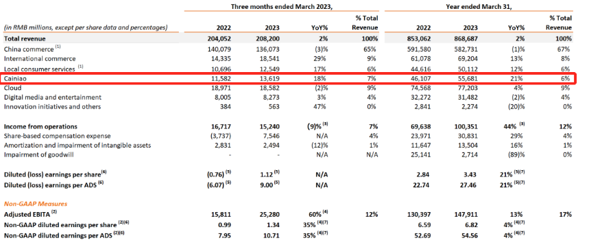 到今年5月28日,菜鸟将成立十年。五周年时,菜鸟曾将自己定义为“中国智能物流骨干网”,企业愿景与阿里高度一致,密不可分。如今又一个5年过去了,菜鸟将加速独立——阿里在5月18日的财报会议上确认,菜鸟将启动上市计划,预计在未来12-18个月内完成。 随着上市节点的临近,外界已经开始重新审视这位新秀。过去十年,菜鸟与阿里高度绑定,投资人习惯将两者视为一体。正因如此,很多人忽略了菜鸟作为独立企业的价值:外部客户收入占比持续上升,基础设施网络遍布全国甚至海外,估值一度超越顺丰... 如今的菜鸟,已经不再是依附于阿里的小弟,而是足以在国内物流行业掀起风暴的超级独角兽。但不可否认的是,菜鸟身上仍然充满了阿里的影子,长期的亏损也给他的上市蒙上了阴影。 对于新手来说,独立上市既是机遇也是挑战。我们是否能越过这个障碍还是个未知数。 (图片来自菜鸟官网) 阿里之所以分拆事业群及子公司上市,价值研究院(ID:jiazhiyanjisuso)在之前的报告《阿里“6子N孙”冲刺IPO:谁能占得先机?谁最担心未来?已经详细讨论过了,这里不再赘述。从菜鸟自身来看,其估值处于高位,现在是上市的好时机。 2019年,菜鸟完成最新一轮战略融资,阿里增资233亿,拿下12%的股份。按照股本折算,菜鸟当时的估值高达2000亿元,达到历史峰值。三年疫情期间,中概股股价大幅波动,很多独角兽的估值也大幅降低。但得益于物流行业的高度景气,菜鸟估值并未受到太大影响。 上月发布的胡润全球独角兽榜单显示,菜鸟跻身全球前十,即时估值约1850亿元,几乎相当于兔子(1050亿)和货女(900亿)的总和,位列物流行业第一。 作为对比,我们也可以看看其他上市物流企业在发稿时的市值:京东物流845亿元,ZTO快递1870亿元,顺丰控股2468亿元。现阶段菜鸟的估值远好于京东物流,和中通相当。虽然不如大哥SF,但也是妥妥的一线选手。 资本对一家科技独角兽估值的逻辑其实很简单,无非就是那几点:企业成长性、市场占有率、赛道景气度。从营收、市场份额等一系列数据不难看出,菜鸟完全符合这些标准。这个时候上市,确实能实现利益最大化。 在营收方面,与普通物流企业不同,菜鸟的业务更加复杂,主要包括国内物流、国际物流、城乡码头、物流科技、物流地产五大板块,以及丹鸟等自建的高端仓配团队。其主要收入来源是商家收取的供应链、C2M和直送服务费,以及面向C端用户的菜鸟裹裹、社区驿站和校园驿站。 阿里财报显示,菜鸟2023财年第四季度(2023自然年第一季度)总收入为189.15亿元,抵消跨板块交易后的收入同比增长18%。纵向比较,这个增速并不高。2021财年和2022财年,菜鸟剔除阿里巴巴集团关联交易的总收入分别为372.58亿元和461.07亿元,同比分别增长68%和24%。 经过过去两个财年的高速增长,菜鸟营收逐渐趋于稳定是很自然的。而且如果横向比较,菜鸟的营收增速好于阿里大部分事业群和子公司,与多家头部物流企业相比也不算太多。 相比内部兄弟公司,由张勇亲自挂帅的阿里云第四季度收入185.82亿元,同比下降2%;久拖未决的娱乐形势也不容乐观,总收入仅82.73亿元,同比微增3%;频繁调整的阿里本地生活服务集团总营收为125.49亿元,17%的同比增速仍略低于菜鸟。 (图片来自阿里巴巴财报) 和外部对手比,作为行业龙头的顺丰控股过去三个财年的营收增速也一直在放缓,从2020年的37.25%降至2022年的29.11%,和菜鸟相差不大。至于国内市场份额最高的中通快递,过去三年总营收分别录得252.14亿、304.06亿和353.77亿元,对应的营收增速一直徘徊在20%以下。 万事俱备,菜鸟上市似乎真的只欠东风了。但我们都知道,没有一家公司是完美的,菜鸟肯定也有自己的问题。在冲刺IPO之际,这些问题将被投资者、分析师用放大镜仔细检阅,甚至成为菜鸟上市的绊脚石。 在对菜鸟的各种担忧中,业务过于依赖阿里和长期亏损是被提及最多的两个。 针对前面的问题,菜鸟已经进步了很多,第三方客户的收入在过去几个财年一直在上升。尤其是疫情爆发后,当地物流受限,菜鸟的基层物流网络凸显优势,抢走了不少客户。 2022财年第三季度(2021自然年第四季度),阿里在财报中首次披露菜鸟运营数据和第三方收入占比。数据显示,菜鸟本季度外部收入占比67%,第三方业务数量持续增长。但菜鸟的收入结构在随后几个季度并没有太大变化。2022财年全年外部收入占比69%,增长趋于平缓。 再说亏损。最新财报显示,菜鸟抵消跨事业部交易后的运营亏损为11.67亿元,略好于去年同期的10.81亿元;调整后的EBITA为-3.19亿元,较去年同期的-9.12亿元大幅收窄。菜鸟这几年真的在努力减亏,进步肉眼可见。但是和同龄人比,这个成绩真的不算优秀。 还和行业龙头顺丰、中通做对比。2022财年,顺丰控股归母净利润达61.74亿元,同比增长44.62%;扣非后净利润高达53.37亿元,同比增长190.97%。中通的营收比不上顺丰,但利润率比得上顺丰。2022财年归母净利润68.09亿元,同比增长43.2%。 据价值研究院(ID:jiazhiyanjisuso)介绍,对阿里的依赖和长期亏损这两个问题完全可以放在一起分析。 如上所述,阿里单独公布菜鸟营收,也不过是最近两年的事情。也是近两年,菜鸟亏损的问题越来越突出——这和业务扩张过快,物流基础设施烧钱有关。烧钱搞基建,是阿里给菜鸟的使命。尤其是为保障阿里跨境业务而建的海外物流仓,严重吞噬了菜鸟的利润。 在国内,菜鸟