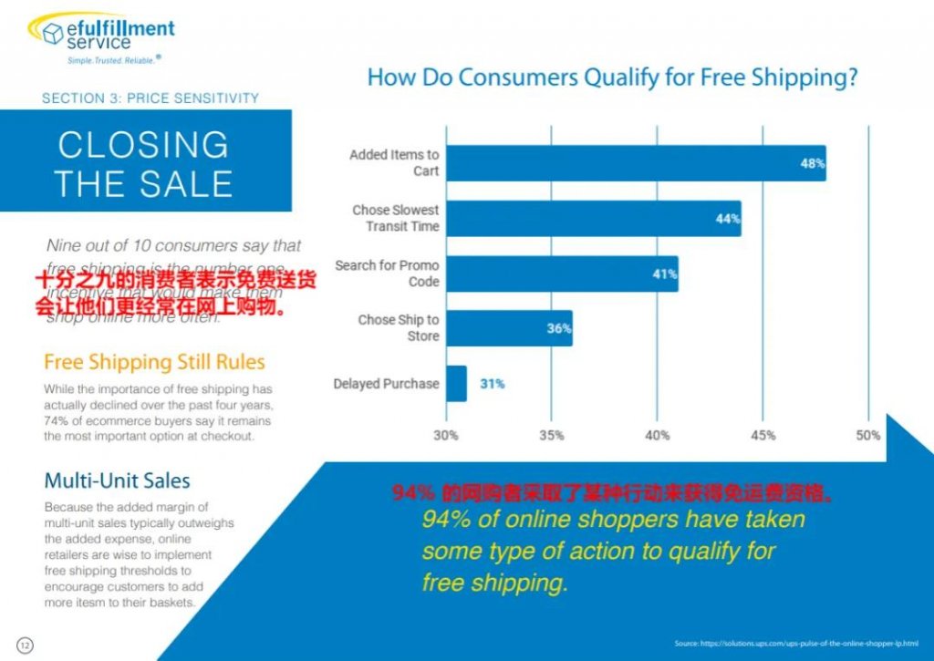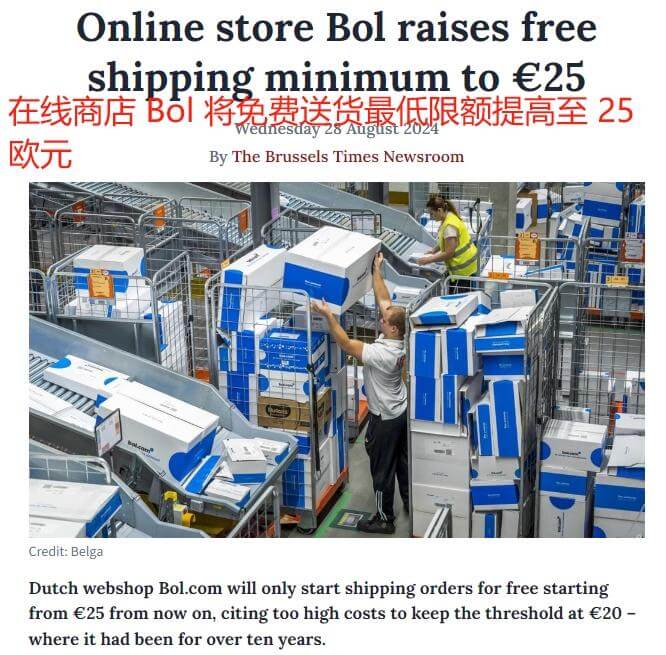 提升免费送货门槛 于今日,荷兰著名的网上商店 Bol 宣告,将其免费送货服务的最低订单金额由 20 欧元提升至 25 欧元,而在此之前,这一门槛已然存续了十余年。其发言人 Joost Morel 在弗拉芒电台中阐释道,“物流成本的确上扬了,此乃我们决定提高运输门槛的缘由。” Bol提高免费送货最低限额 图源:brusselstimes Bol 就此表示,新的门槛旨在激励顾客一次性购置更多的产品,减少物流配送中心与客户之间的运输频次,以削减物流成本。 坦率而言,荷兰电商市场具备极大的潜力。据相关数据表明,2023 年荷兰在线销售额达 347 亿欧元,消费者在线购买次数高达 3.65 亿次。此外,截至 2024 年 1 月 1 日,荷兰活跃在线商店超过 10.1 万家,相较于 2014 年增加了两倍有余。 荷兰网店数量10年翻了2倍 图源:Ecommerce News-Europe 于荷兰电商市场之中,Bol 备受欢迎,堪称处于显著领先之态势。在 2023 年荷兰电商 TOP100 榜单里,Bol.com 位列榜首。依据其母公司 Ahold Delhaize 所公布的去年全年财务报告而言,2023 年,Bol.com 的营收与 GMV 均达成了同步上涨。 bol.com断层领先 图源:Twinkle100 必然趋势 鉴于网络购物日益成为消费者进行购物的首要方式,消费者对于网络购物也提出了更为严苛的要求。其中,免费送货服务更是成为众多消费者瞩目的关键要点。 依据 Efulfillment Service 的一项调查成果表明,高达 90%的消费者宣称“免费送货服务能够提升他们的购物频次”,甚至为了获取免费送货的服务,他们甘愿通过增加购物车内商品的数量、选取最慢的运输选项、搜索优惠码等手段来达成目的。 免费送货刺激购物频率 图源:efulfillmentservice 诚然,于电商领域之中,物流运输成本实难消弭。倘若欲使消费者皆能享用此服务,势必需要压缩平台之利润。为回收部分成本,各大电商平台均苦思诸多良策,而提升免费送货门槛即为其中之一。 诸如 TikTok ,在今年年初,TikTok Shop 美区官方发布通告,提高了消费者的免费送货门槛,老用户的免费送货门槛由 20 美元提升至 25 美元,然而新注册及首次购买用户的免费送货门槛仍维持在 5 美元。此前,亚马逊亦上调了部分免费送货门槛,例如将 Morrisons 在线杂货的免费送货门槛自 40 英镑提高至 60 英镑。 尤需留意的是,除却上调免费送货门槛者,亦存在部分跨境电商平台为获取更多市场份额,下调免邮门槛以吸引消费者,例如美客多。于今年年初,美客多秘鲁站宣告下调免邮门槛,原本消费满 79 索尔方可享受的包邮服务,现今仅需 39 索尔,门槛近乎减半。在此般“诱惑”面前,想必鲜少有消费者能够抵御而不优先选择之。 免运费门槛降低 图源:america-retail 总体而言,“免费送货”对于消费者购物选择所产生的影响颇为重大。就跨境电商平台来讲,门槛过高将导致无法留住消费者,门槛过低则会影响自身利润,故而寻得其中适宜的尺度乃是极为重要的任务。