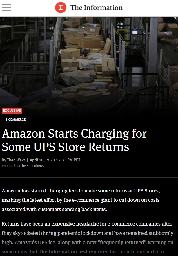 4月11日,有媒体报道称,亚马逊开始对部分UPS门店的退货收取费用,以降低客户退货的相关成本。此前,亚马逊购物者可以在UPS商店免费退货“无缺陷”或“无损坏”的商品。现在亚马逊已经开始对因“改变主意”或“意外订单”而退货的商品收取1美元(每次)。据悉,这笔费用将自动从退款金额中扣除。同时,如果顾客有其他免费退货...