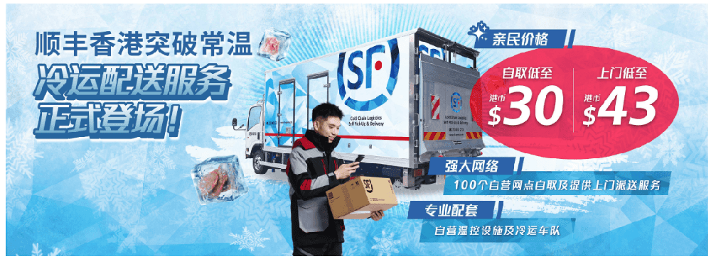 日前,顺丰速运官网发布消息称,顺丰香港“本地冷运配送服务”已正式登场,服务覆盖三大温区,满足消费者对急冻、冰鲜及恒温货物的上门派送或自取需求。顺丰香港凭借自身的配送能力、资源网络及极具市场竞争力的价格,能满足用户不同类别的业务需求。除派送上门外,用户还可选择于顺丰香港100个指定自营网点自取冷运快件,灵...