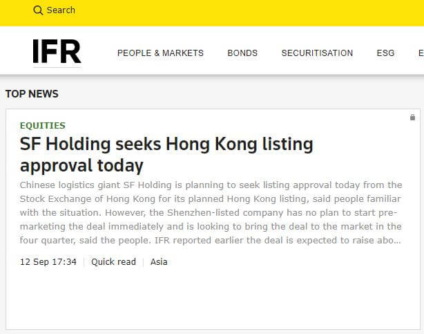 据悉,有知情人士透露,顺丰控股拟定于今日向香港证券交易所申请上市批准。然而,该公司目前并无立即展开预营销交易的计划,而是期望在第四季度将交易推向市场。此前的报道表明,此项交易预计将募集约 10 亿至 20 亿美元资金。顺丰当前已在 A 股上市,倘若此次赴港上市成功,顺丰将成为快递行业首家“A+H”股上市公司。顺丰...