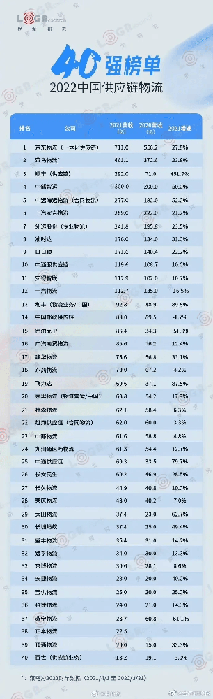 物流与我们的生活息息相关,大宗商品的流通也主要依靠物流公司来完成。不过,很少有人对物流行业有清晰的认知,国内物流行业的格局如何,想必各位也不是很清楚。据 CNMO 了解,近日有媒体公布了 "2022 中国供应链物流企业 40 强 ",排行榜显示,京东物流登顶,菜鸟物流则位居第二。近日,罗戈网举办以 " 拓外...