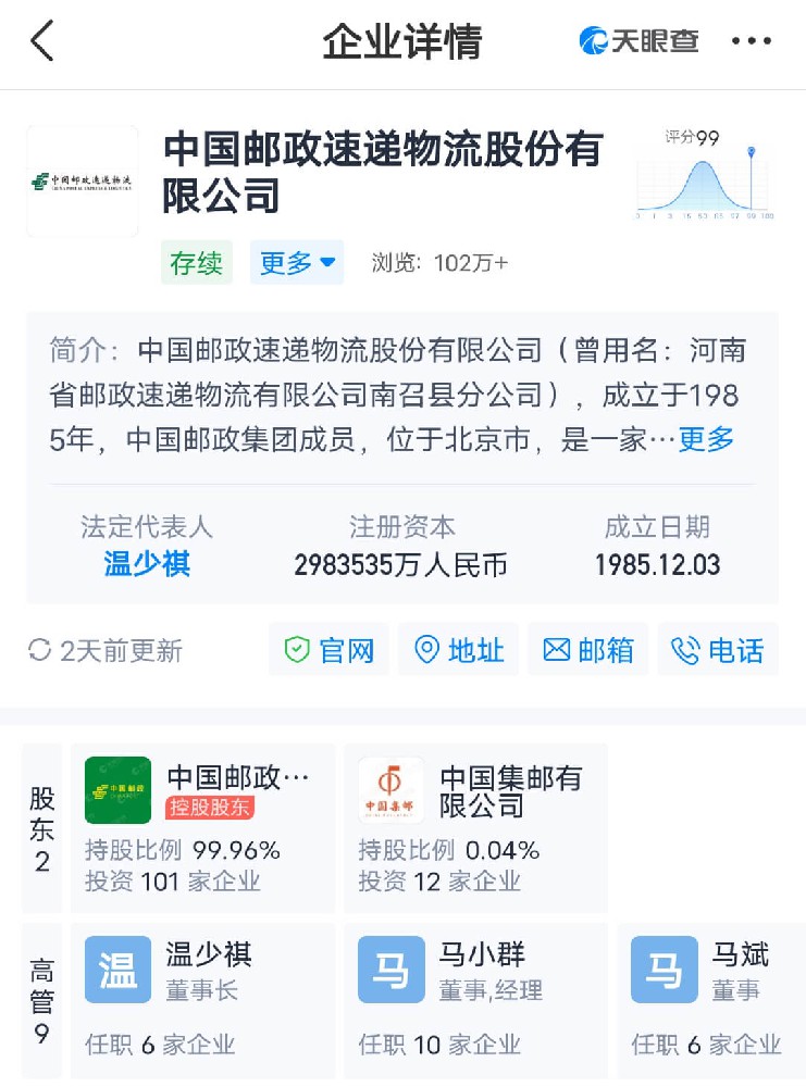 天眼查资料显示,近日,中国邮政速递物流股份有限公司发生工商变更,注册资本由约265.8亿元增至约298亿元,增幅约12%。同时,公司经营范围新增检验检测服务、无船承运业务。中国邮政速递物流股份有限公司成立于1985年12月,法定代表人为温少祺,由中国邮政集团有限公司、中国集邮有限公司共同持股。中国邮政速递物流股份有限...