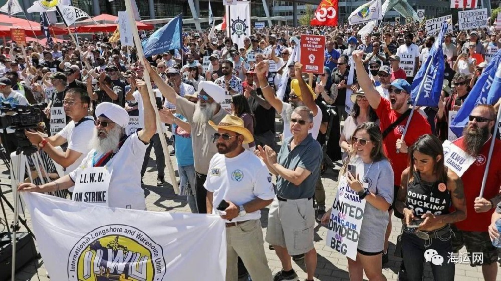 加拿大西海岸主要港口的码头工人罢工已持续超十天,加拿大两个最大的太平洋港口温哥华和鲁珀特王子港目前仍处于停摆状态,超过20多艘船只开始在锚地排队等待靠泊,为美国服务的铁路运营实际上也已经停止,多家船公司宣布跳港。不列颠哥伦比亚省海事雇主协会 (BCMEA) 声称,罢工已经产生了“灾难性的经济影响”,自7月1日约7...