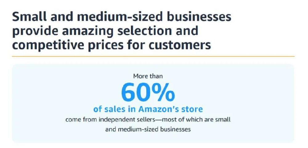一、成为主力军5月22日,亚马逊发布了最新的《亚马逊2022年小企业权赋报告》,报告显示,亚马逊平台上超过60%的销售额来自于第三方卖家,其中大部分由中小型企业组成。报告还显示,2022年,亚马逊美国独立卖家共售出超过41亿件产品,平均每分钟7800件,在亚马逊上的平均销售额超过23万美元。(图源:亚马逊2022年小企业权赋...