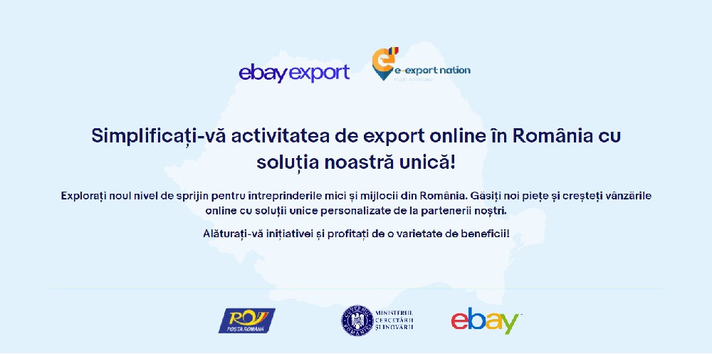 美国电子商务集团eBay正与罗马尼亚邮政服务公司PostaRomana合作,帮助当地注册电子出口国家平台的中小企业(SME)将产品出口到190多个国家/地区。eBay还与罗马尼亚研究、创新和数字化部、PostaRomana推出了一个简化在线出口活动的平台,名为“e-exportnation”。(图源e-export&nb...