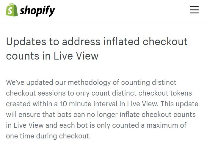 Shopify实时视图功能近期升级了结账算法,每隔10分钟,系统会对创建的支付标记数进行统计,并确保机器人在结账时最多只被计入一次统计。此次更新将有效剔除恶意刷单所带来的误差,从而为卖家提供更加精准的数据参考,帮助更好地了解商店活动情况。此外,ShopifyPlus商家可以激活机器人保护功能,以帮助防止产品库存主...