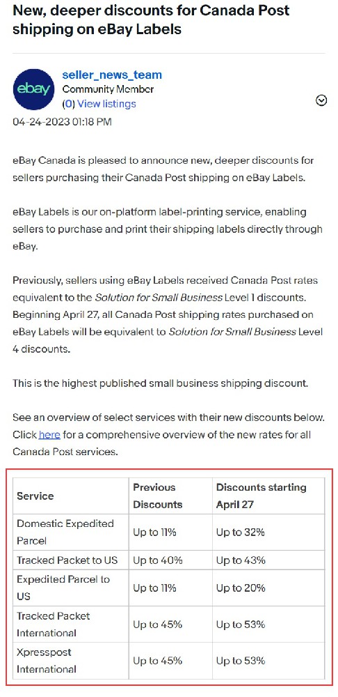 eBay加拿大站宣布,将为eBayLabels购买并打印加拿大邮政邮资的卖家提供新的更优惠的折扣。eBayLabels是eBay提供的标签打印服务,允许卖家直接通过eBay购买并打印发货标签。此前,使用eBay Labels的卖家获得的加拿大邮政费率相当于小企业解决方案的首次折扣。从4月27日起,eBay Labels购买加拿大邮政邮费的费率将...