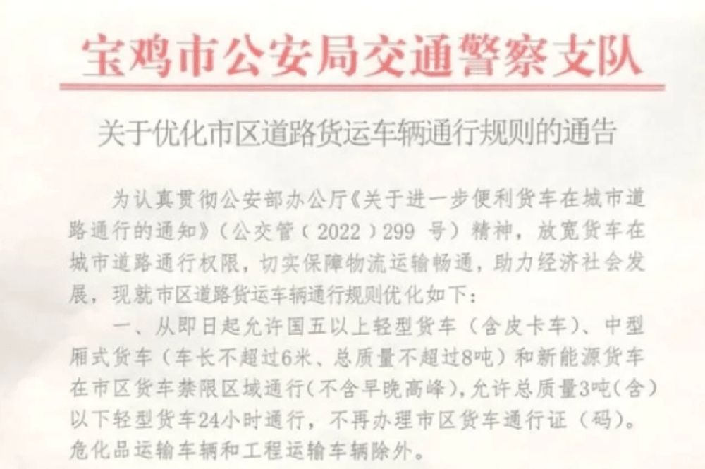 近日,公安部下发《关于进一步便利货车在城市道路通行的通知》(公交管〔2022〕299号),优化调整货车进城政策,放宽中型货车的城市通行权利。基于此,安徽、山东、山西、云南等多省市积极响应,试点放宽货车的城市道路通行限制,让中型货车与轻型货车享有同等的城市路权。● 多措施并举,提升货车通行效率轻卡的高效运...