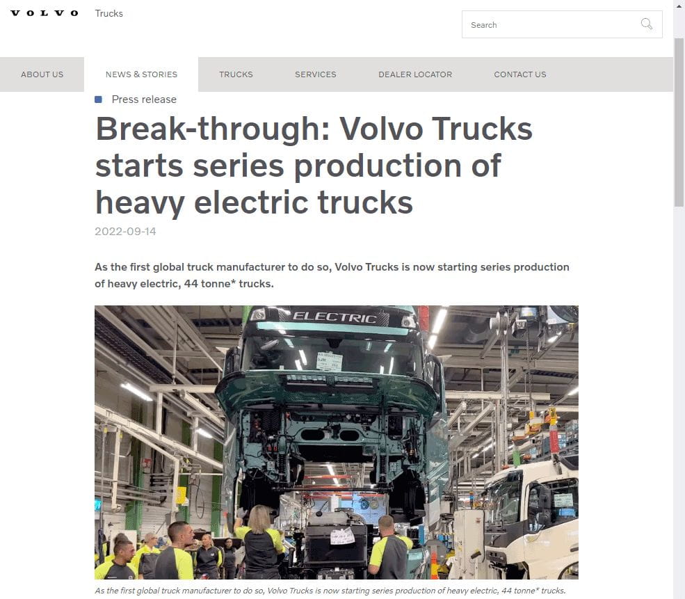 9月14日,瑞典卡车制造商沃尔沃卡车表示,正在开始批量生产沃尔沃FH、沃尔沃FM和沃尔沃FMX等车型的电动版本。这些车型约占该集团总销量的三分之二,在全球范围内共有六款电动卡车在批量生产之中。沃尔沃卡车将在位于瑞典哥德堡(Gothenburg)的图夫(Tuve)工厂生产电动重卡,明年该公司位于比利时根特(Ghent)的工厂也将开...