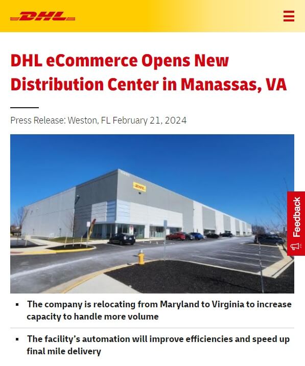 DHL电子商务在弗吉尼亚州马纳萨斯市开设新配送中心,继续扩大在美国的产能。据了解,DHL电子商务是DHL集团的一个部门。新配送中心占地138500平方英尺,拥有41个码头门,集仓库、会议室、培训和办公空间于一体,是马里兰州埃尔克里奇原配送中心面积的两倍。该配送中心设有2台大型分拣机,每台每小时可处理14000个包裹,并具有...