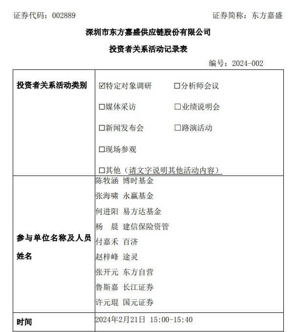 东方嘉盛日前接受机构调研时表示,在过去几年,公司跨境电商进口业务板块享受了国内跨境电商消费市场蓬勃发展的红利,目前也是公司收入占比最大的业务板块,进口和出口业务大概七三分。目前公司国际物流团队在欧美、日韩、东南亚等区域已打造多样、稳定、高效的国际运输方案,提供门对门的空运、海运、小包快递等国际货运代...