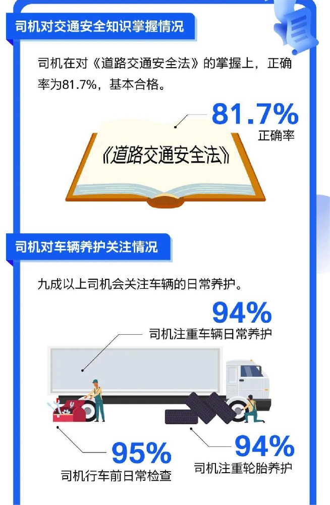 数据显示,2022年我国道路货运行业的1100多万货运车辆和1700余万货车司机完成了全社会73%的营业性货运量,中储智运联合红运工会对货车司机安全认知情况进行了调查,并发布《2023年新业态货车司机安全意识大数据报告》,本次调研共回收有效问卷11486份,涉及货车司机安全知识、安全意识、安全技能掌握三方面。报告显示,司机...