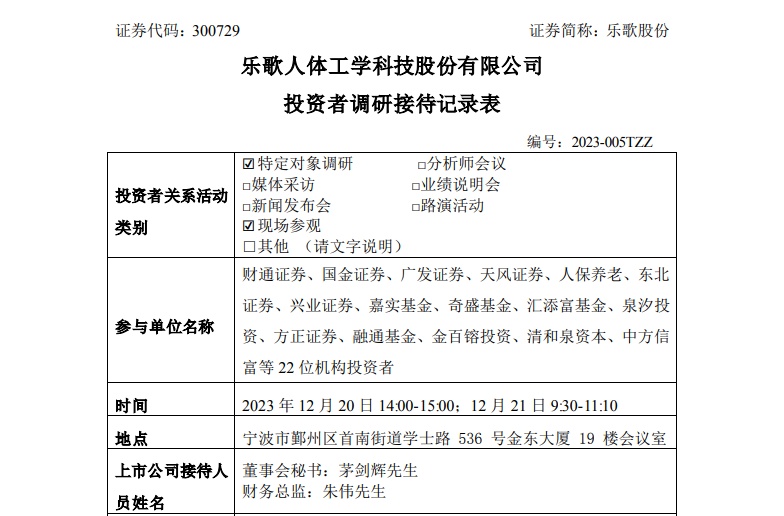 乐歌股份于12月20日-12月21日接受了财通证券、国金证券、广发证券、天风证券等22位机构投资者调研。乐歌股份透露,2024年,根据业务发展需要,计划新租海外仓库10-15万平米,同时开建美东美西两个仓库,预计2025年投入运营,未来公司将陆续利用已储备的800多英亩土地建设成海外仓,取代租赁仓库,提升海外仓的毛利、净利水平...