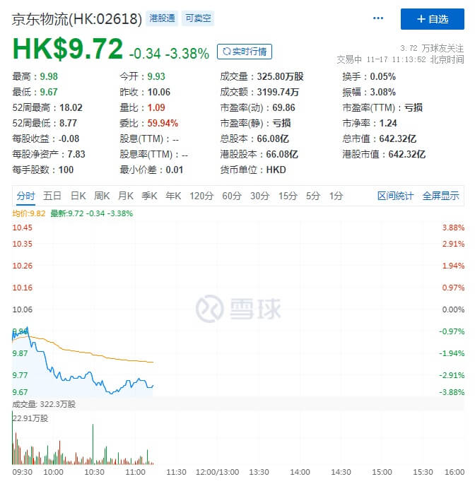 交银国际发布研究报告称,维持京东物流“买入”评级,基于运营效率提升上调利润,预计2023/24/25年调整后净利润率1.2%/2%/2.5%(此前为1.1%/1.9%/2.4%)。14%折现率不变,目标价从14.3港元上调至14.6港元。公司将在逐步兑现合理盈利水平的前提下,不断拓展业务市占率,行业整合空间大。截至11月17日11:13,京东物流股价报9....