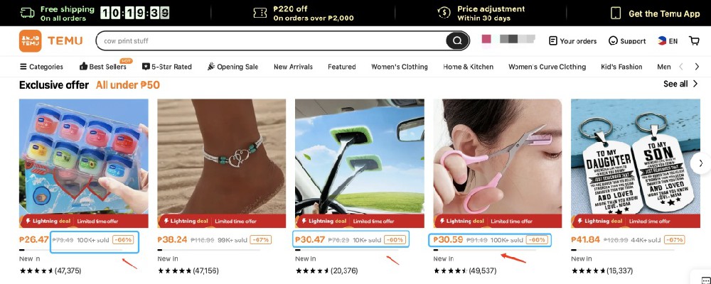 有媒体获悉,拼多多跨境电商平台Temu已正式进军东南亚市场,首站在菲律宾。据Temu官网介绍,该平台上线已有一段时间,很多商品的销售额已经达到10万+,评价过万。Temu菲站依旧提供高达9折的大优惠,各种满减,免费退款。大部分商品价格保持在1500菲律宾比索(约等于200元人民币)以下,略低于东南亚主流电商平台。(图源:Tem...