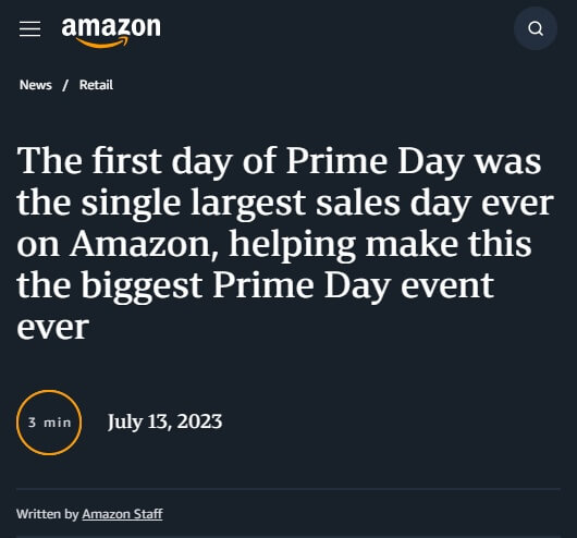 亚马逊官方发布的Prime会员日战报数据显示,在为期两日的2023亚马逊Prime会员日活动中,亚马逊Prime会员在全球购买了超过3.75亿件商品,通过各类优惠在数百万笔交易中节省了超过25亿美元,助力今年的Prime会员日再创新高。今年活动首日,凭借破纪录的销售表现,成为亚马逊历史上单日销售最高的一天。对亚马逊第三方卖家来说...